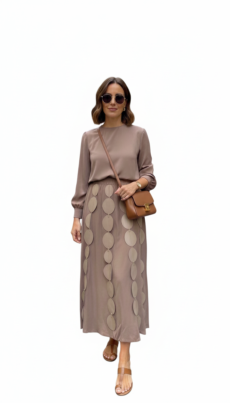 CEREMONY COOKIE ÖNÜ DERİ PARÇACIKLI BELİ LASTİK ETEKLİ TAKIM
