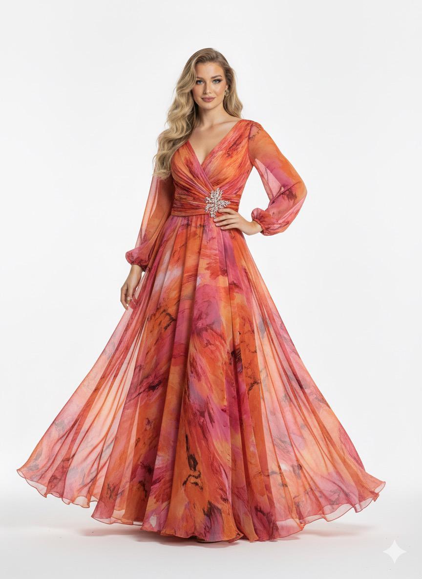 ALCHERA ŞAL DESENLİ ABİYE ELBİSE (24Y3290O)