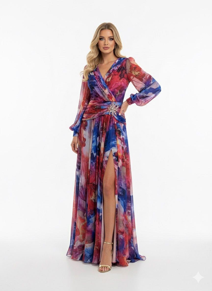 ALCHERA ŞAL DESENLİ ABİYE ELBİSE
