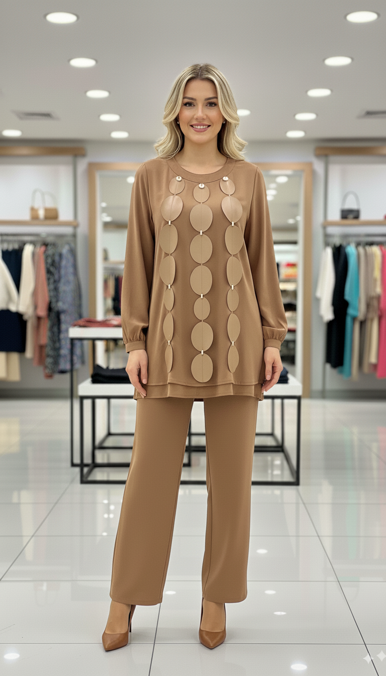 CEREMONY ÖNÜ DERİ PARÇACIKLI BELİ LASTİK Lİ PANTOLONLU TAKIM