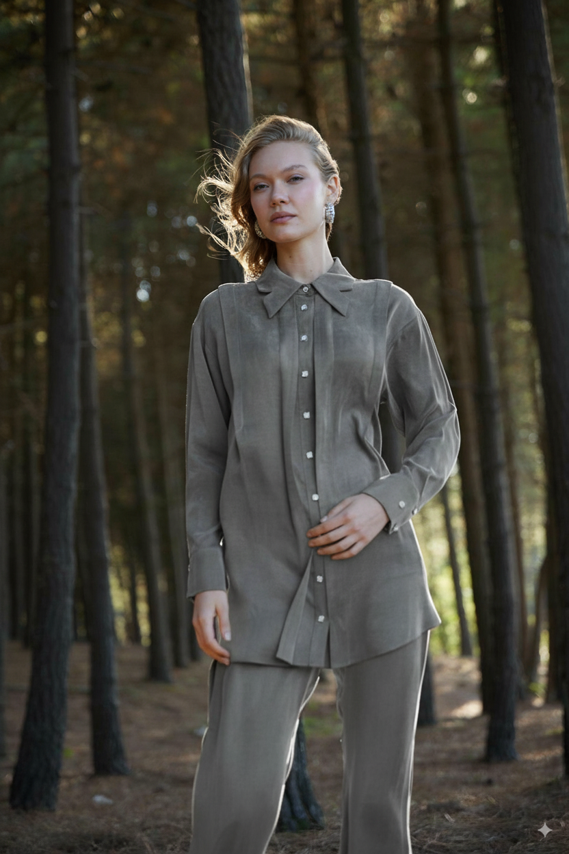 Premium By Moodbasic YAKA DETAYLI TAŞLANMIŞ İPEK TAKIM