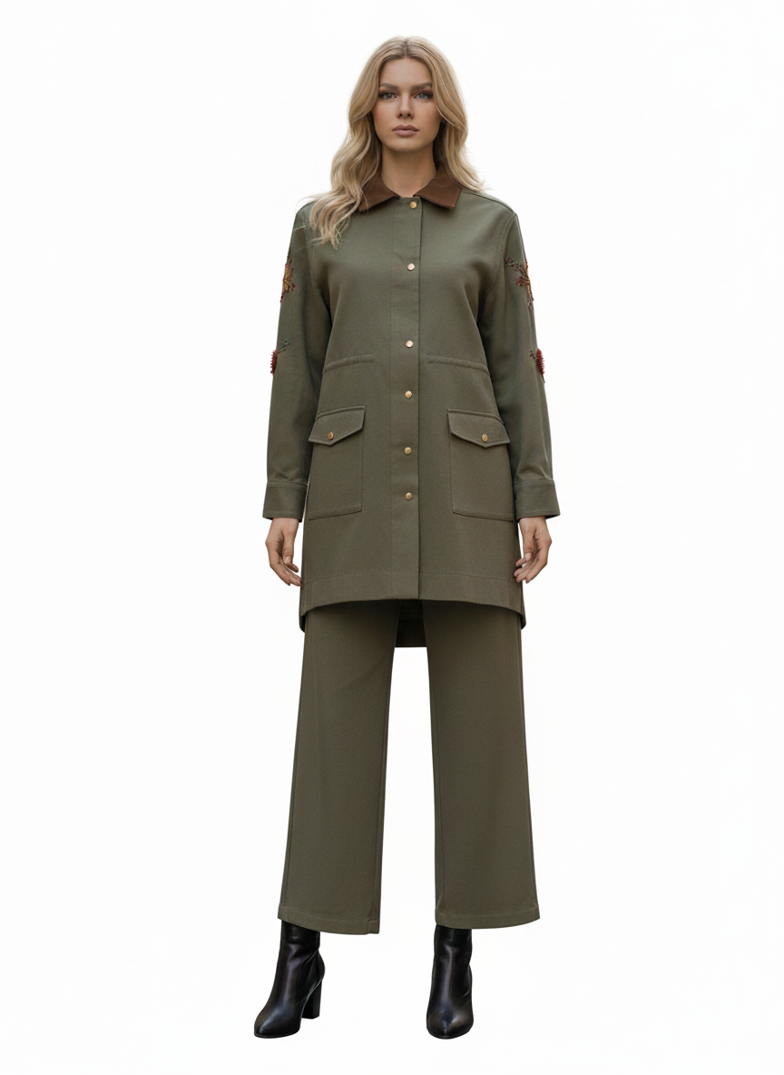 YEŞİM ÖZCAN GABARDİN NAKIŞLI PARKA