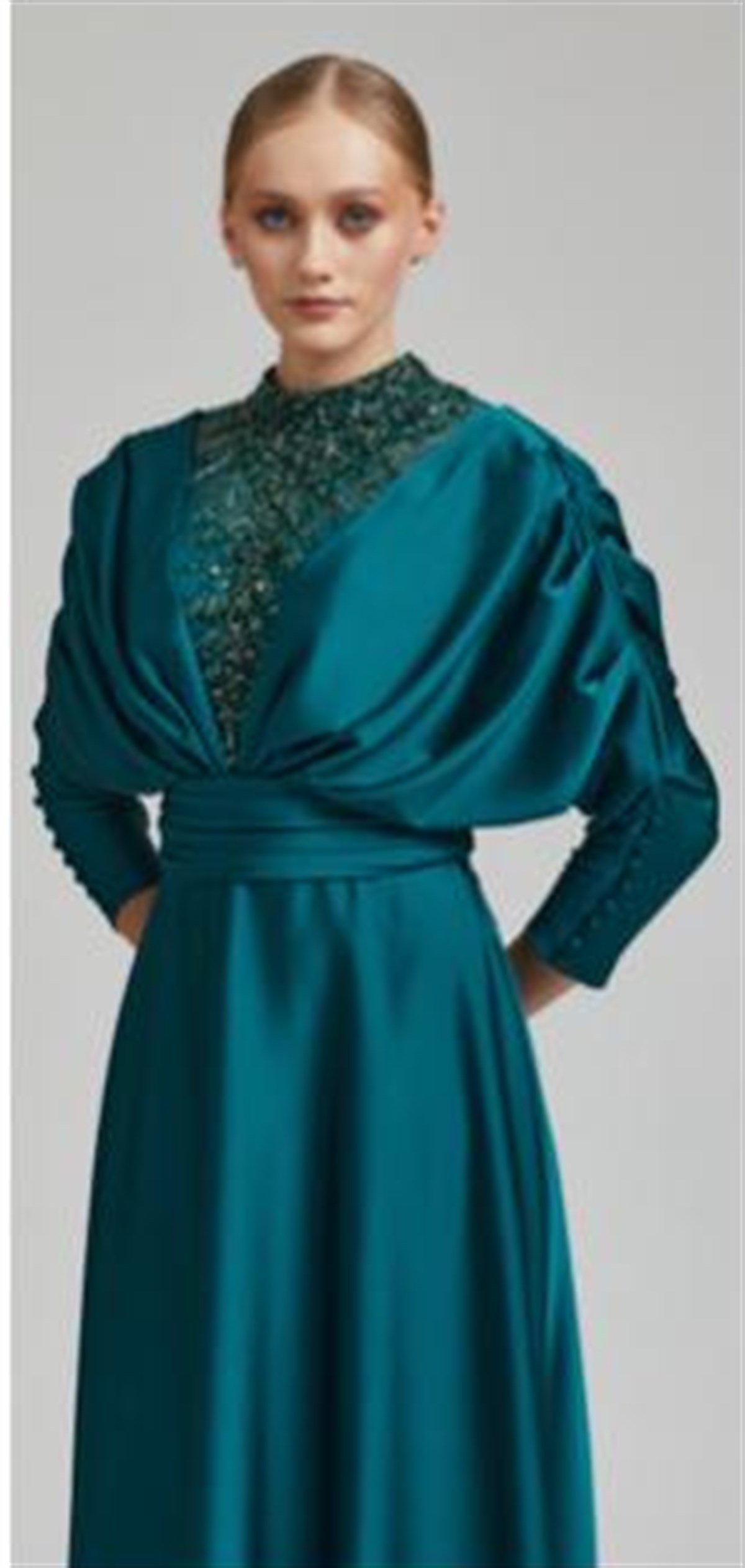 KENZEL ÖNÜ VE ARKASI TÜL DETAYLI ABİYE ELBİSE