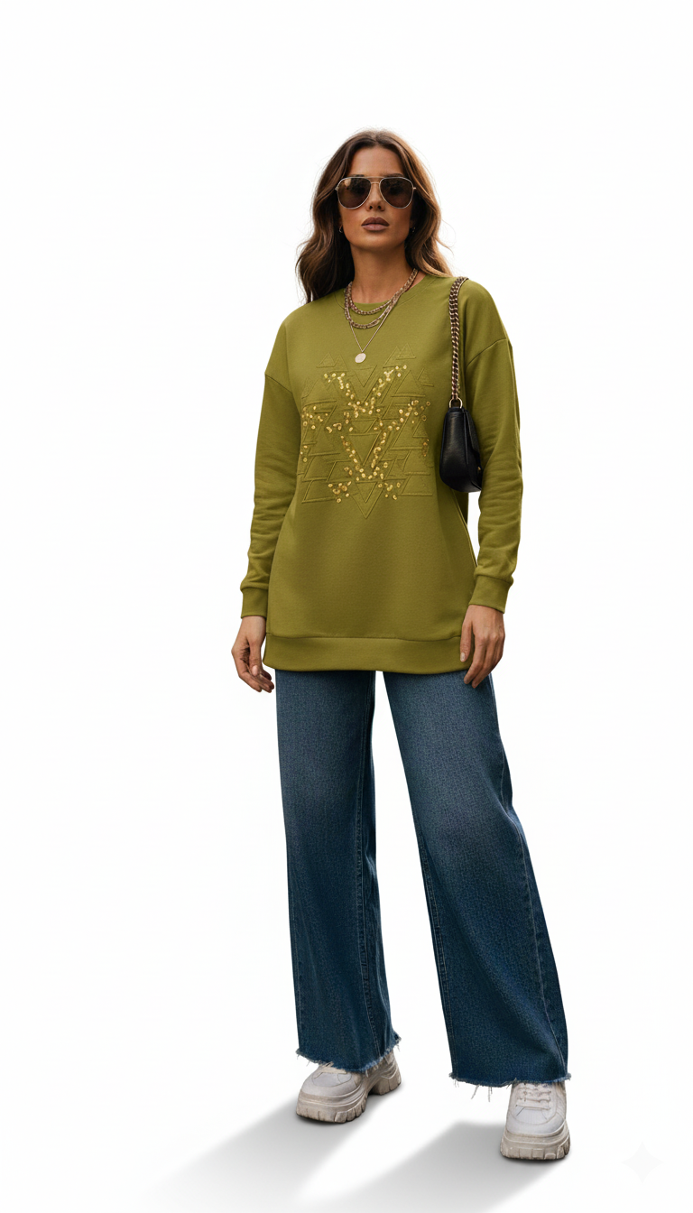 MOODBASIC NAKIŞLI TAŞLANMIŞ TEN CEL TUNİK (25K1328Y)