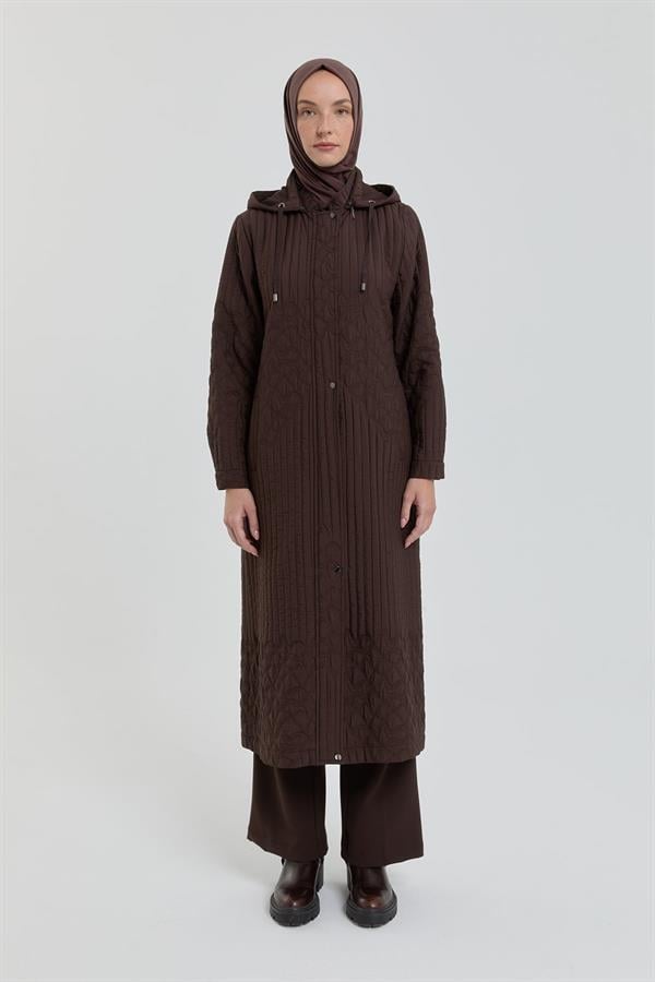 Nihan Büyük Beden İnce Kapitone Seyyar Kapşonlu Pardesü (25K4193K)