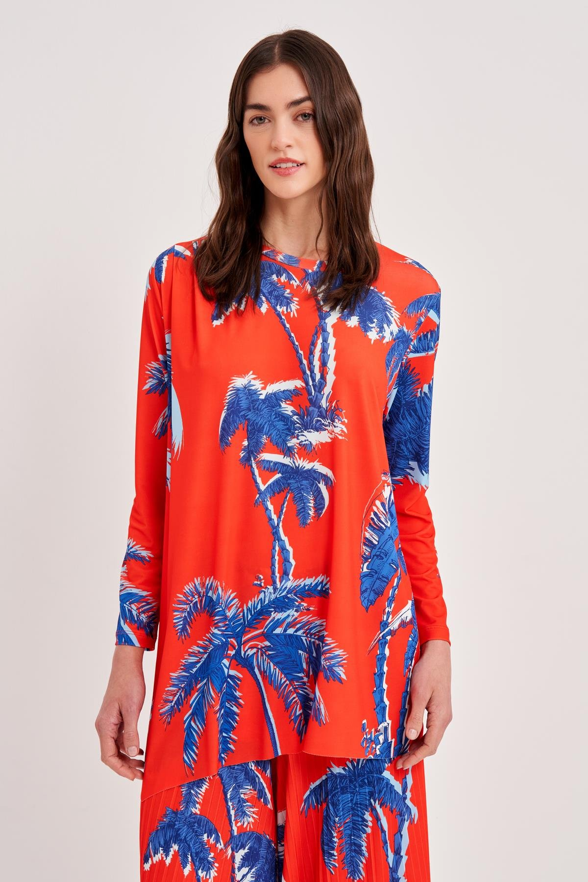 PALMİYE DESENLİ ASİMETRİK MÜKEMMEL BLUZ.