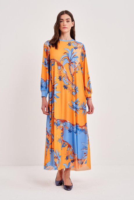 NOİ JARSE GÖVDELİ PALMİYE DESENLİ A FORM ELBİSEMALI ELBİSE (25Y75205OO)