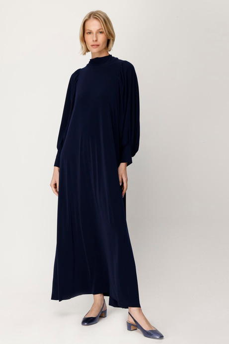 JARSE OMUZU BÜZGÜLÜ YAKADAN FULARLI ELBİSE