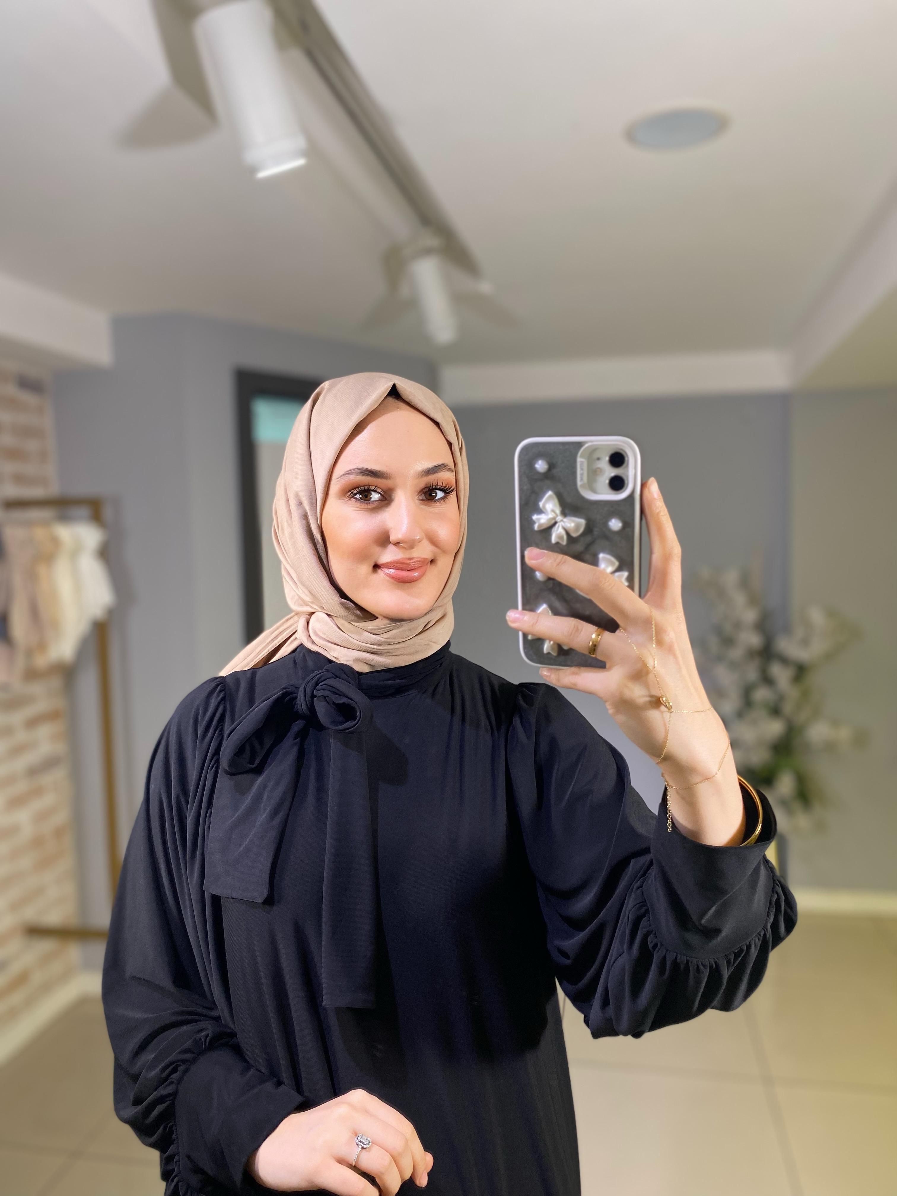 JARSE OMUZU BÜZGÜLÜ YAKADAN FULARLI ELBİSE