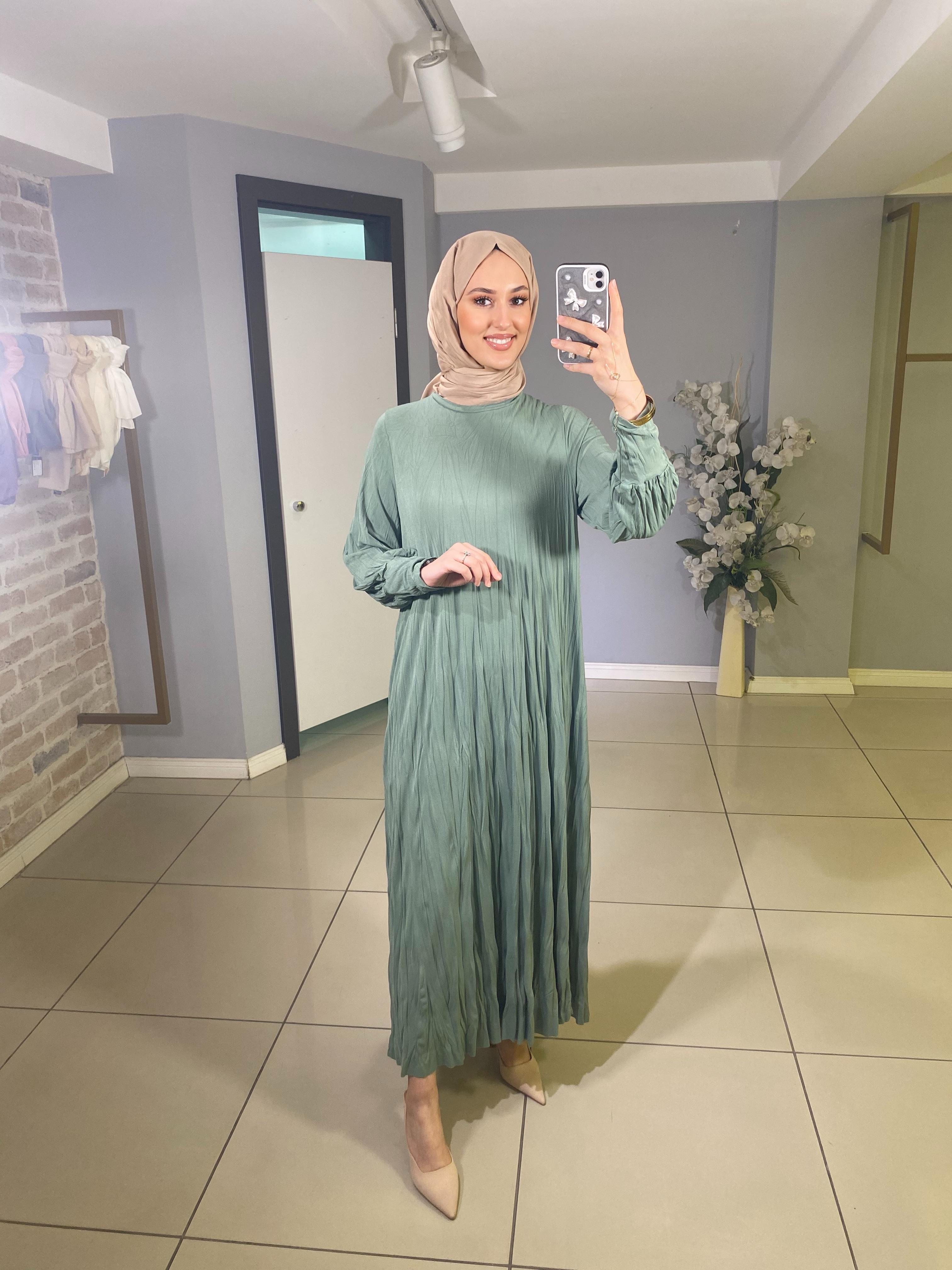 NOİ KREP BOYUNA CRUSHLI A FORM ELBİSE