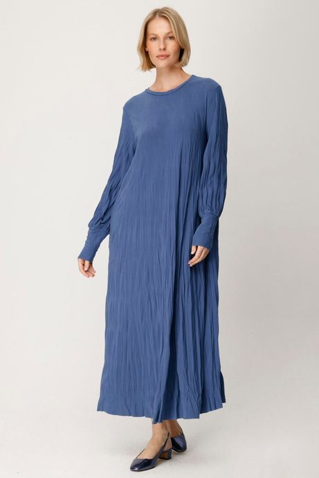 NOİ KREP BOYUNA CRUSHLI A FORM ELBİSE