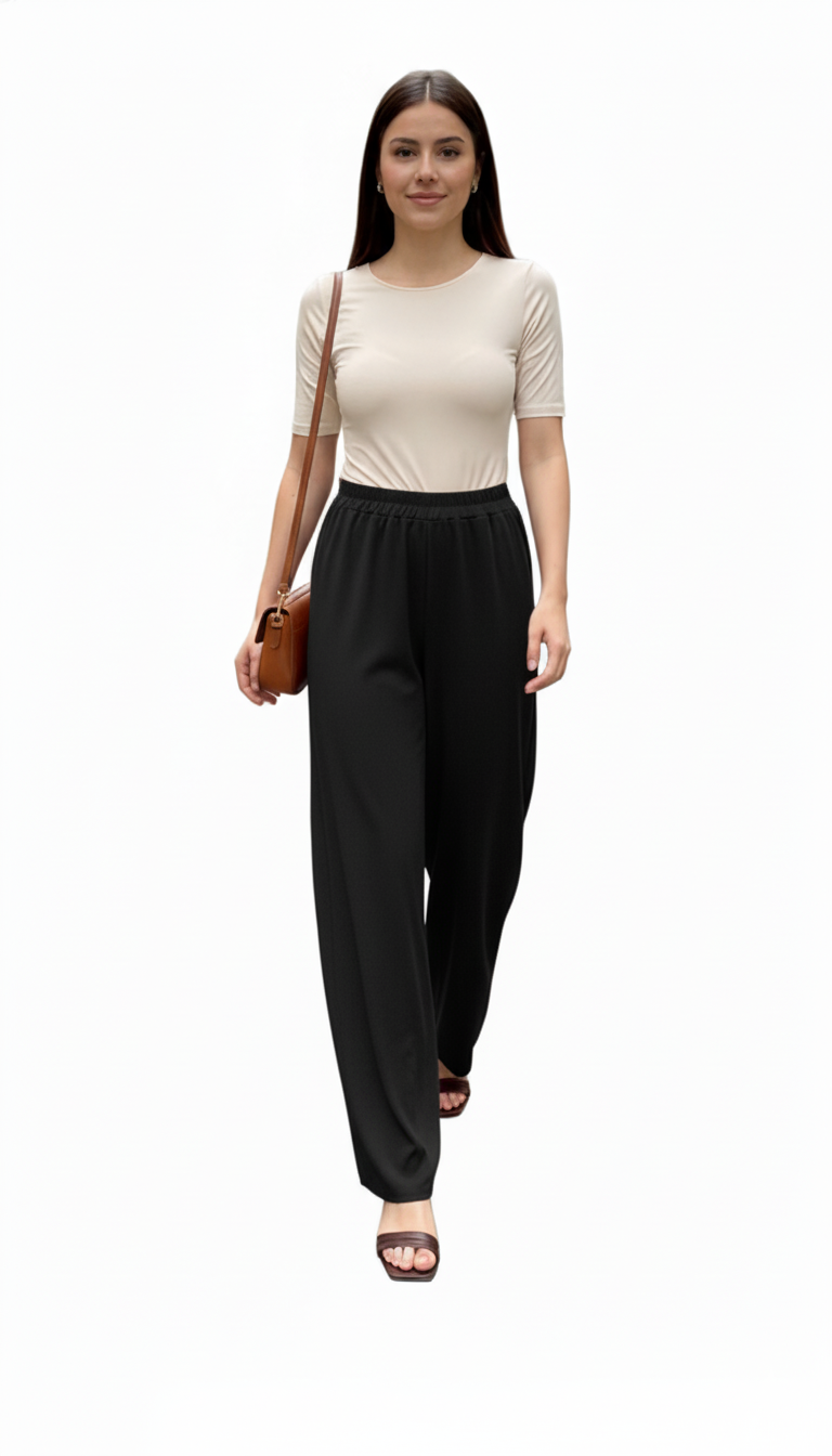 NOİ KREP JARSE GENİŞ PAÇA PANTOLON ETEK