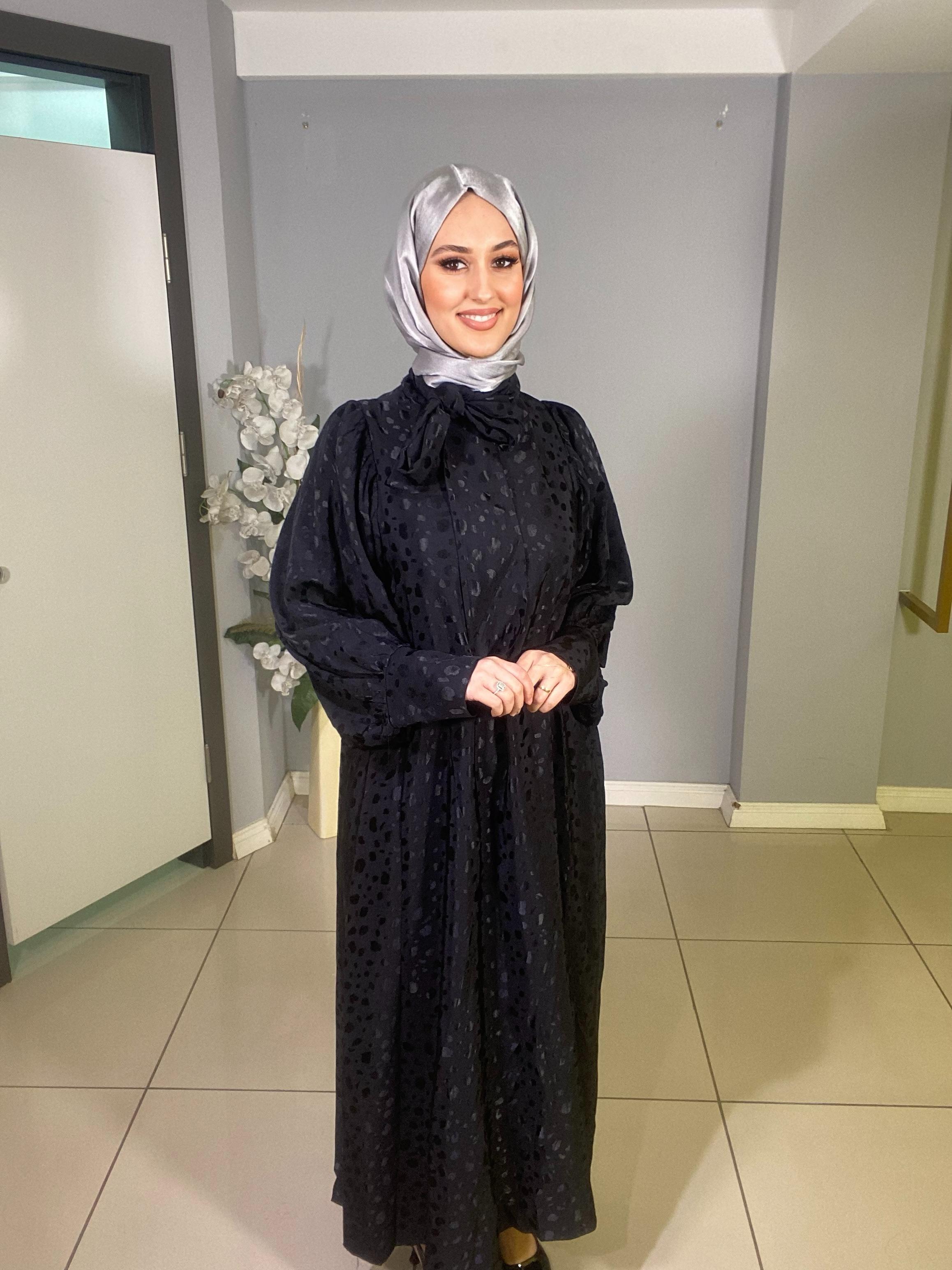 NOİ PUANLI JAKAR VİSKON YAKADAN BAGLAMALI ELBİSE